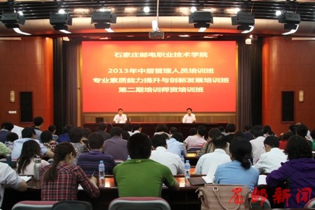 (信息来源:组织部、人事处) 5月29日上午,学院“2013年中层管理人员培训班”、“专业素质能力提升与创新发展培训班”、“第二期培训师资培训班”在绿苑大厦三楼报告厅同时开班,学院党委书记田克美进行开班动员,并以《...