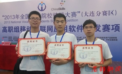 (信息来源:教务处) 6月19日至21日,2013年全国高职院校技能大赛移动互联网应用软件开发赛项在大连举行。由我院计算机系肖雄、电信工程系封爱宇和张广森3名同学组成的河北省代表一队在比赛中表现优异,荣获比赛二等奖。...