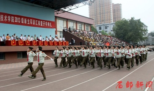 (信息来源:学院办公室) 9月20日,学院2013级新生军训汇报暨开学典礼在本部运动场隆重举行。学院党委书记田克美、院长郎秋洪,党委副书记边保国、周爱莲,副院长边根锡,河北省军区教导大队培训处处长安平伟及学院相关系部处室的领导出席了大会,...