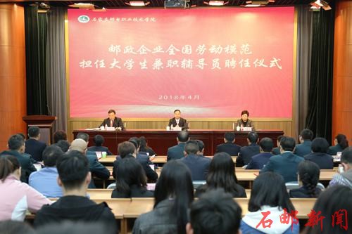 (信息来源:党委宣传部 学生处 团委) 2018年4月24日,学院举行聘请邮政企业全国劳动模范担任大学生兼职政治辅导员仪式。学院院长、党委副书记刘支宇发表讲话并为43位邮政企业劳动模范颁发聘任证书,党委副书记、副院长周爱莲宣读《...