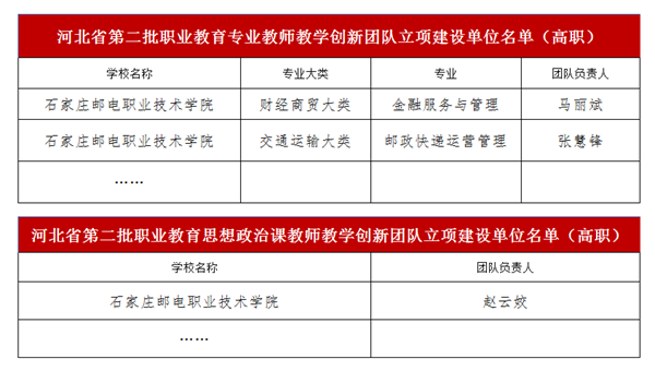 2021年5月7日,河北省教育厅公布了第二批省级职业教育教师教学创新团队立项建设单位名单,学院申报的金融服务与管理、邮政快递运营管理2个专业教师教学创新团队和1个职业教育思想政治课教师教学创新团队成功登榜入选。...