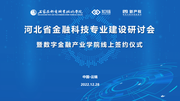 近日,由学院主办,新产教河北信息科技有限公司、北京知链科技有限公司承办的“2022年河北省金融科技专业建设研讨会暨数字金融产业学院线上签约仪式”圆满落幕。学院党委副书记、院长谢册出席会议并致辞,学院副院长徐晓昭签署合作协议。...