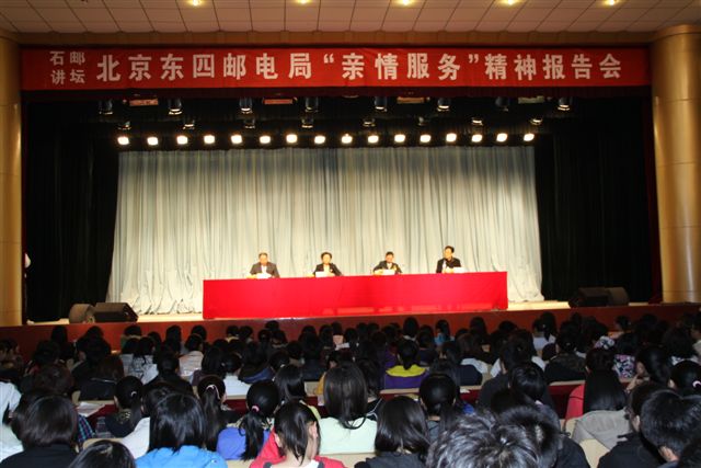 (信息来源:学生处 王昊) 3月20日,全国劳动模范、北京东四邮电局沈智慧局长做客石邮讲坛,针对北京东四邮电局“亲情服务”精神为学院学生作专题报告。学院党委周爱莲副书记出席会议。 报告会上,沈智慧局长向同学们讲述了东四邮电局自建国以来60年来亲情服务的历程,...