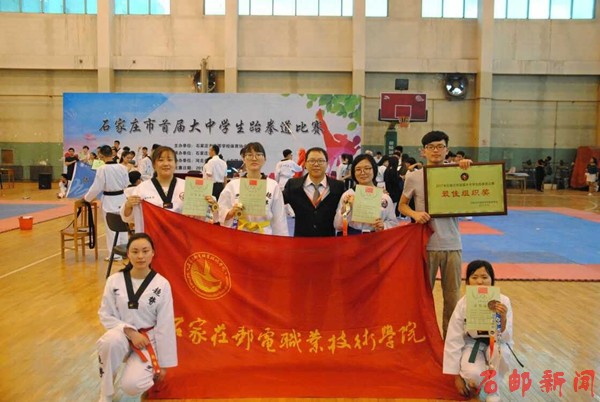 为了弘扬体育精神,进一步发展丰富校园文化,4月22日,由石家庄市高等体育协会主办的石家庄首届大学生体育文化节拉开帷幕,学院共派出5支体育代表队参加了女子排球、女子乒乓球、男(女)子篮球、跆拳道等5个项目比赛,其中学院女子排球代表队荣获专科组女子排球冠军;学院女子乒乓球队在专科组6支队伍的比赛中获得专科组女子冠军;学院男(女)篮球代表队荣获女子篮球赛第三名,男子篮球第四名的优异成绩;学院跆拳道代表队荣获比赛混合双人品势第一,男子个人竞技第三,女子个人品势第三,女子团体竞技第三,男子团体竞技第五及最佳组织奖优异成绩。