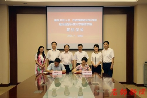 国家开放大学副校长李林曙和石家庄邮电职业技术学院院长郎秋洪在国家开放大学邮政学院具体实施与教学运行管理层面的协议书上签字。根据协议,双方将在提供适合邮政员工发展的学习项目、学习资源,以及共同建设线下支持服务体系、加强师资队伍建设和合作开展课题研究等方面展开具体合作。