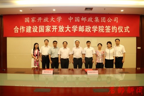 2016年7月8日,国家开放大学与中国邮政集团公司合作建设国家开放大学邮政学院签约仪式在学院隆重举行。国家开放大学校长杨志坚、副校长李林曙,事业发展与合作办学部部长李彦忠、副部长郑洁,中国邮政集团公司人力资源部副总经理李书杰,学院党委书记田克美、院长郎秋洪、副院长谢册等参加了签约仪式。签约仪式由田克美主持。