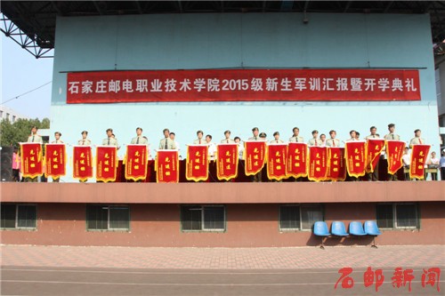 2015年9月18日,学院2015级新生军训汇报暨开学典礼在本部运动场隆重举行。学院党委副书记周爱莲,武警石家庄士官学校副校长胡传新,学院副院长边根锡、谢册,及学院相关系部处室的领导出席了大会,大会由边根锡主持。