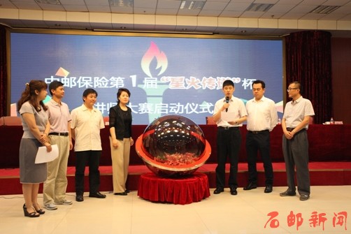 2015年6月8日,中邮人寿保险股份有限公司(以下简称“中邮保险”)期交产品升级及讲师能力提升培训班暨第一届“星火传递”杯讲师大赛在学院成功举行。中邮保险总精算师王智勇、工会副主席陈宏忠、市场经营部副总经理袁彬、产品精算中心负责人郭潇、运营中心副总经理吴旭东、总部营业部总经理助理张红英、学院副院长谢册等领导出席大赛启动仪式,来自全国18个省分公司的96名讲师参加了启动仪式。启动仪式由袁彬主持。