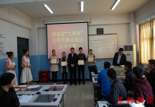 2014年10月26日,河北省“大唐杯”大学生移动通信技术大赛在学院成功举办。本次大赛由河北省高职高专电子信息类专业教学指导委员会主办,由我院同大唐电信科技产业集团、石家庄科技工程职业学院共同承办,共有来自5所院校的26个小组参加了比赛。我院参赛选手在比赛中荣获佳绩,取得大赛一等奖2项、二等奖1项、三等奖1项,并荣获了和优秀团队奖,电信工程系张星老师获得了最佳指导教师奖。同时,学院还获得了大赛优秀组织奖。