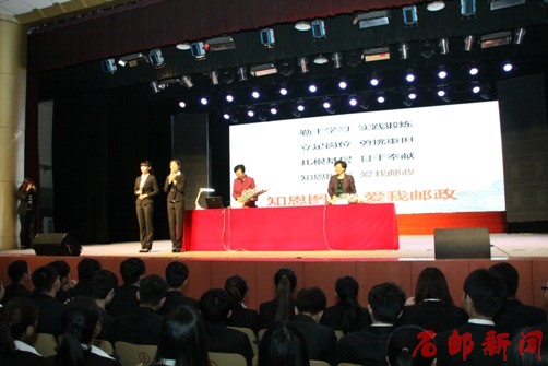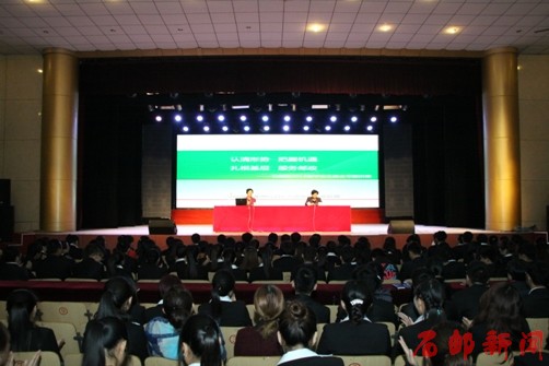 陈虹霞非常关心学院学生的成长、成才,自2007年开始,她已经连续8年为我院学生做素质能力培训指导和就业专题教育报告,为学院的人才培养工作和石邮学子的职业生涯发展做出了突出贡献。本次报告会上,陈虹霞以《认清形势 把握机遇 扎根基层 服务邮政》为题,从“大学生面临的就业形势、中国邮政的发展情况和对毕业生的要求、企业需要什么样的人、如何做企业欢迎的员工”四个方面,对同学们如何认清就业形势、如何迈出就业第一步进行了指导。