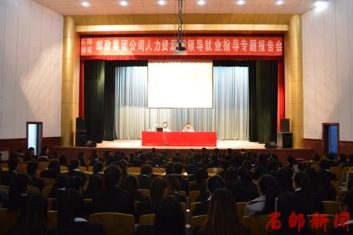 为了让同学们详细了解当前的就业形势,陈虹霞详细分析了历年高校扩招、毕业生人数、招聘岗位等数据的变化,指出了当前大学生面临严峻的就业形势。同时,她向同学们介绍了中国邮政的发展情况,重点说明了2014年中国邮政招录高校毕业生的情况,以及企业对毕业生分层次、按岗位的选择标准,并对同学们如何准备求职简历和推荐表、订单生如何应聘等提出了具体要求。她指出,邮政企业为大学生搭建了广阔的发展平台,同学们只要有信心,扎根基层、勤奋努力、踏实肯干,就一定能取得成功。
