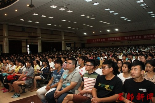 8日至9日,学院党委副书记周爱莲分3个场次为新生讲授了大学第一课《让梦想在石邮起航》。她在报告中从“对大学的认识”、“石邮学院概况”、“人才培养特色”、“大学如何度过”四个方面饱含深情的进行了细致讲解,并对学生提出了殷切期望。