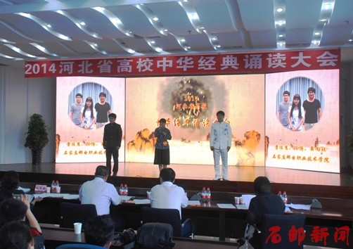 2014年6月21日至22日,由河北省教育厅、河北省语委主办的“2014河北省高校中华经典诵读大赛”在东北大学秦皇岛分校隆重举行,来自全省40余所高校的120名选手参加了比赛角逐。我院首次参赛,并获比赛三等奖和优秀奖。