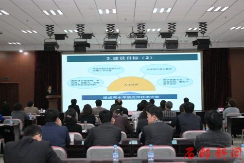(教务处处长张洪芬代表应用技术大学队汇报成果)