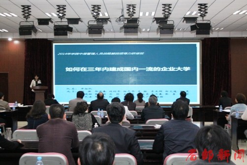 2014年4月27日上午,学院2014年中层管理人员战略解码领导力研修班进行了成果汇报、评比奖励和研讨总结,至此,为期一个多月的研修班圆满结束。