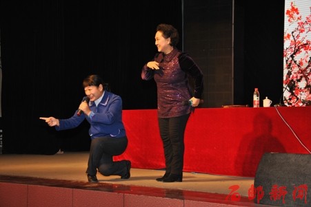 靳玲展老师作为著名小品演员、评剧表演艺术家赵丽蓉的学生,她惟妙惟肖地串联演唱了赵丽蓉小品中几段著名的唱词《别贫嘴》、《一百八一杯》、《正月开花十四五六》、《中国功夫》,还生动传神地表演了赵本山的小品《小草》,获得了热烈掌声。