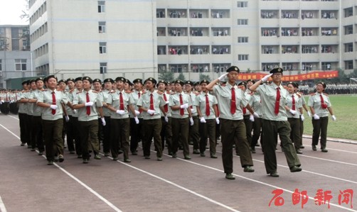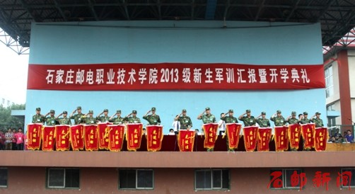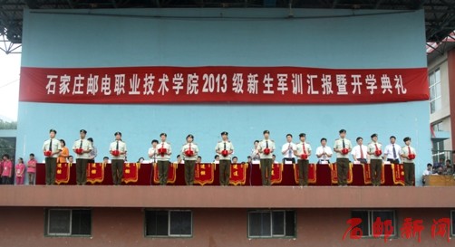 9月20日,学院2013级新生军训汇报暨开学典礼在本部运动场隆重举行。学院党委书记田克美、院长郎秋洪,党委副书记边保国、周爱莲,副院长边根锡,河北省军区教导大队培训处处长安平伟及学院相关系部处室的领导出席了大会,大会由周爱莲主持。