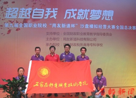 近日,由全国财政职业教育教学指导委员会支持、用友新道科技有限公司主办的第九届全国职业院校“用友新道杯”沙盘模拟经营大赛全国总决赛在河南财政税务高等专科学校举行。大赛自4月开赛以来,通过校内赛、各省(市、区)大赛选拔,共计77支代表队参加了本次全国总决赛,各代表队均为各省赛区的特等奖或一等奖。经过为期两天的激烈角逐,我院代表队最终获得总决赛三等奖。