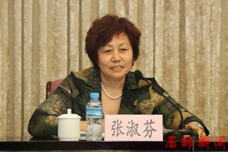 (张淑芬在会上讲话)