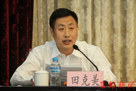 (田克美在会上表态发言)