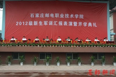 9月21日,学院2012级新生军训汇报暨开学典礼在本部运动场隆重举行。学院党委书记、院长赵双占同志,副院长郎秋洪同志、党委副书记周爱莲同志、副院长边根锡同志、河北省军区教导大队培训处安礼波处长、教务处王志齐处长及学院相关系部处室的领导出席了大会,大会由周爱莲主持。