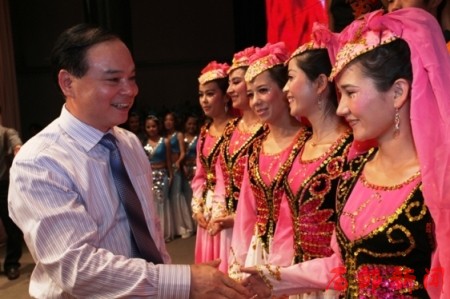 晚会在欢快的歌舞《欢聚一堂》中拉开了帷幕。快板《邮政未来天地宽》、舞蹈《快乐的邮政员工》、歌曲《绿叶对根的情谊》等节目真实的表达了邮政人爱岗敬业、奋发进取的精神。集团公司张荣林副总经理演唱了歌曲《鸿雁》,并与学院兼职教授铁英惠老师合唱了歌曲《为了谁》,表达了对邮政的深切情怀,对本次邮政通信特有职业技能竞赛圆满成功的祝贺,并向全体参赛人员、工作人员和师生们送上了节日的问候。张荣林副总经理精彩的演出博得全场热烈的掌声,把晚会推向了高潮。晚会特别邀请了技能大赛3名优秀选手在现场为大家表演手工点钞,选手们精湛的技艺展示了邮政基层员工扎实的业务技能和素质,赢得了观众热烈的掌声。舞蹈《冲霄汉》、《田埂上,日头下》、《碧波孔雀》、《秀色》等节目展示了学院学生作为新一代邮政人朝气蓬勃、奋发向上的精神风貌。新疆定向培养班的歌舞《新疆姑娘》向观众展示了新疆的特有风情,晚会在劳模班的大合唱《众人划桨开大船》中落下帷幕。