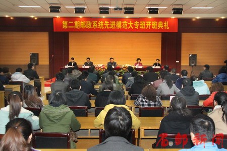 2012年2月24日上午,第二期邮政系统先进模范大专班(以下简称劳模大专班)开学典礼在学院隆重举行。国家邮政工会常务副主席朱惠忠,集团公司人力资源部副总经理陈虹霞,国家邮政工会经济工作部部长王玫,学院党委书记、院长赵双占,学院副院长郎秋洪等领导出席了开学典礼。劳模大专班开学典礼由王玫主持。
