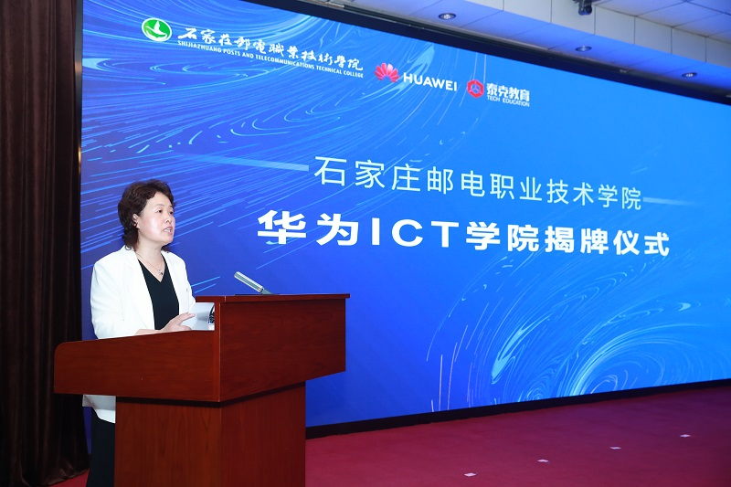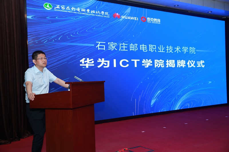 谢册在致辞中指出,双方共建ICT学院,是落实国家教育发展战略,深化产教融合、校企合作的客观要求,是贯彻落实中国邮政集团有限公司与华为公司战略合作、河北省政府与华为公司就发展河北鲲鹏计算产业生态战略合作的重要举措,也是学院加快“双高”建设、推进人才培养模式改革、增强服务地方经济建设能力的有效途径,双方将互利双赢、共同发展,为振兴地方经济、促进社会发展做出应有贡献。
