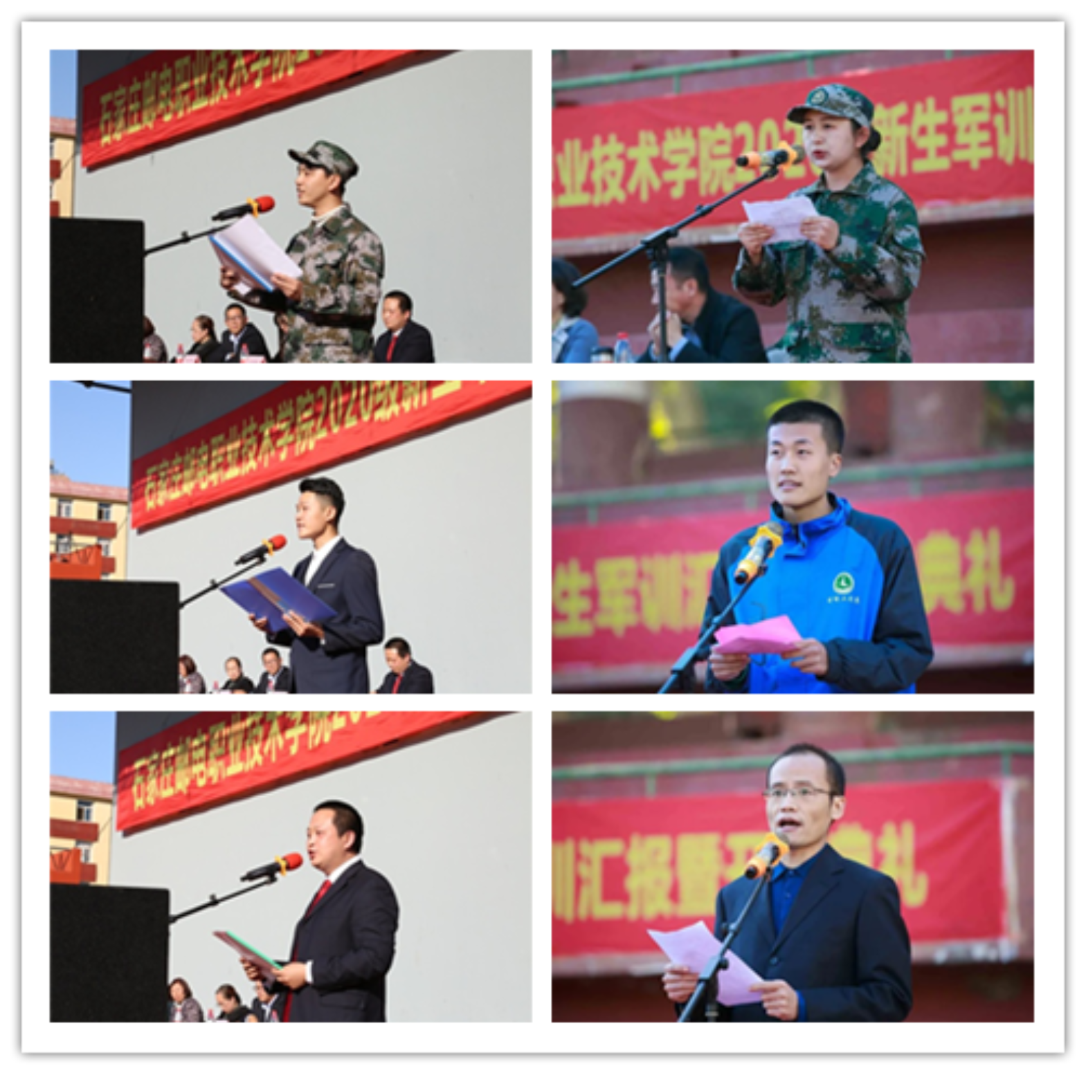 郎秋洪、谢册分别宣布两个校区军训汇报表演开始,并在汇报表演结束后为同学们送上寄语。学院领导希望同学们要有家国情怀、坚定奋斗方向,要传承邮政精神、激发奋斗动力,要磨砺石邮品格、坚实奋斗步伐,要锤炼素质能力、煅造奋斗本领。希望大家能坚定理想信念,锻造过硬本领,奋力拼搏进取,争做时代先锋,只争朝夕,不负韶华,将个人梦想融入石邮梦、邮政梦、中国梦,用青春与汗水谱写人生美好的华章!