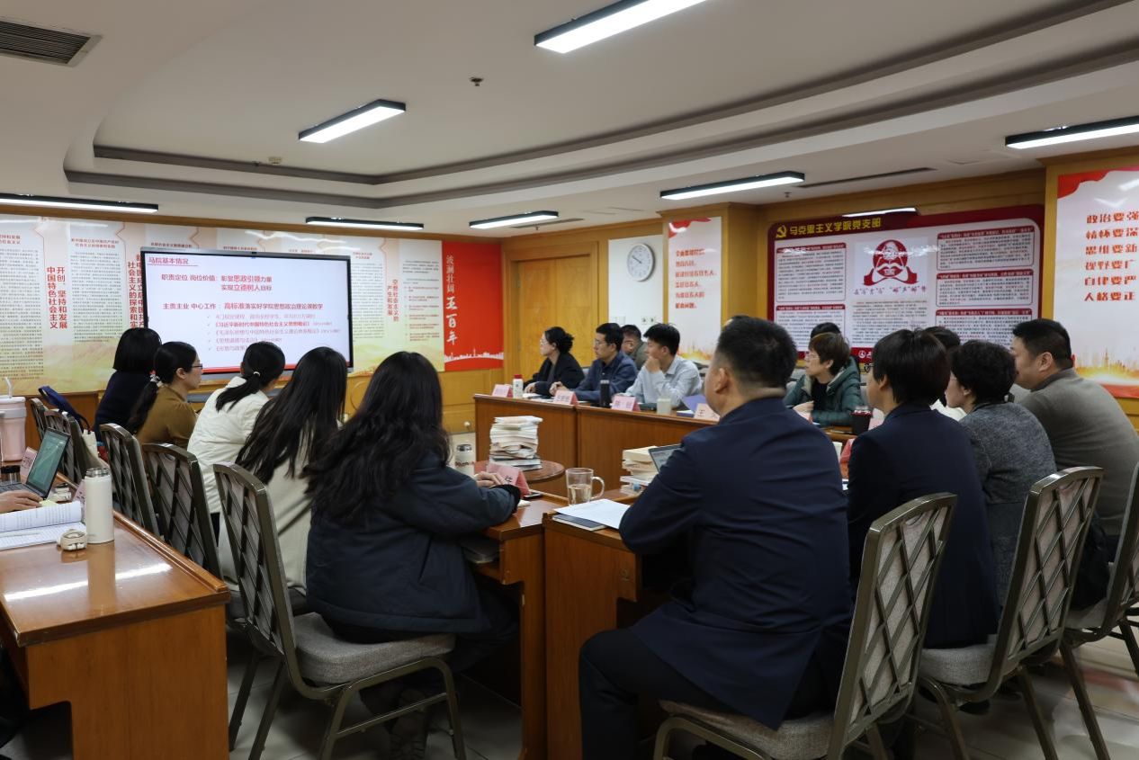 姚秀平处长指出,高校是铸牢教育的主阵地、主渠道、主战场,马克思主义学院则是前沿中的前沿、核心中的核心。将铸牢中华民族共同体意识全面融入思政课教学、贯穿人才培养全过程,既是贯彻落实中央民族工作会议精神的政治要求,也是高校落实立德树人根本任务、培养担当民族复兴大任时代新人的内在需要。并结合民族工作与教育教学实际,从“提高政治站位,深刻把握铸牢教育进课堂的重大意义”“聚焦核心任务,准确把握铸牢教育进课堂的内涵要求”“强化责任担当,推动铸牢教育进课堂走深走实”三个方面提出了要求。申智超副处长强调,要用好《中华民族共同体概论》教材,推动铸牢教育进人才培养方案、进教学大纲、进课堂讲授,并从扩大铸牢教育覆盖面,结合学院实际开设专题课程方面进行了具体指导。