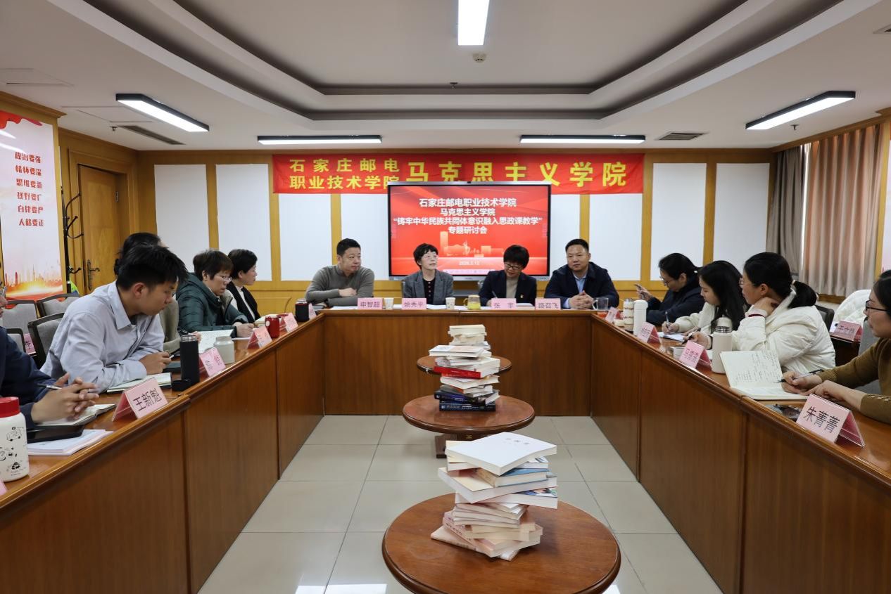 为深入贯彻落实习近平总书记关于加强和改进民族工作的重要思想,铸牢中华民族共同体意识,促进各民族学生交往交流交融,持续提升思政课教学质量、强化育人实效,切实推动“铸牢中华民族共同体意识”与思政课教学深度融合,3月12日上午,马克思主义学院组织召开“铸牢中华民族共同体意识融入思政课教学”专题研讨会。河北省民族事务委员会文教科技处处长姚秀平、副处长申智超应邀莅临会议并作指导,马克思主义学院党支部书记、院长张宇作专题介绍,副院长路召飞主持会议,全体思政课教师参会。