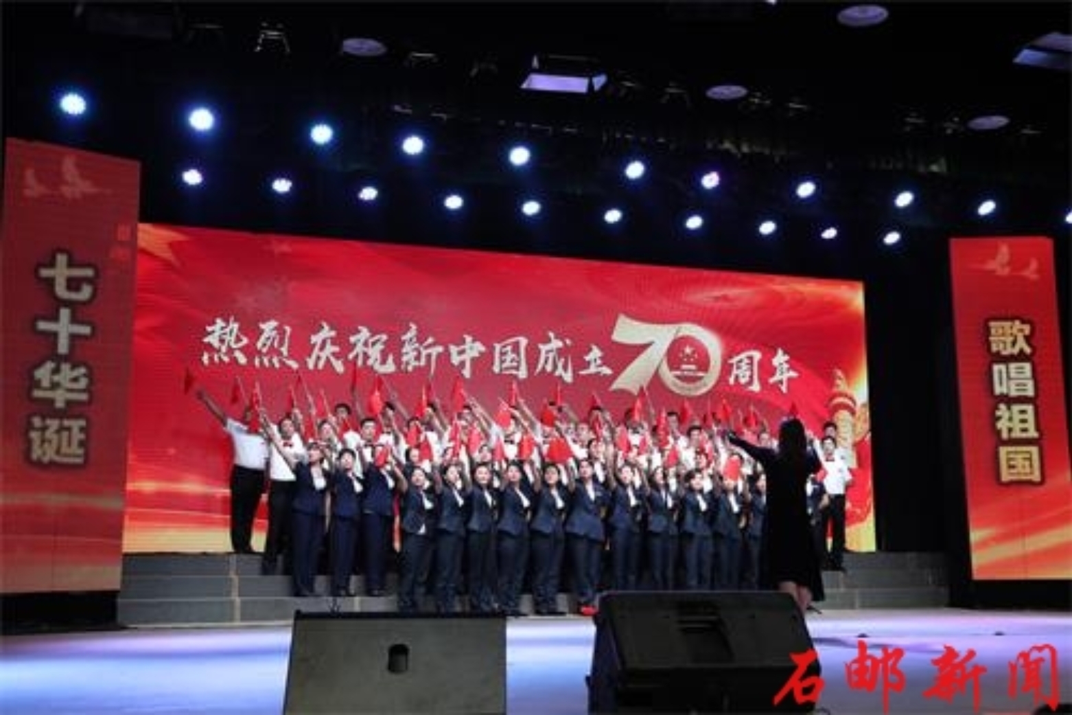 70年风雨历程,70年奋发图强,比赛尾声,台上台下全体教职工合唱《歌唱祖国》,将现场气氛推向高潮。我们共同祝福祖国的生日快乐,祝愿祖国明天更加美好!
