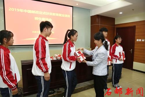 在认真听取了学生代表汇报、教务处针对性教育培养整体安排介绍和成长导师代表发言后,郎秋洪对2017、2018级同学们在各个方面取得的成绩表示认可,对2019级同学们定下的目标表示期待,对成长导师的辛勤付出表示肯定。她指出,学院承担的教育扶贫项目作为中国邮政集团公司定点扶贫的一个重要组成部分,已经招收了四批学生,取得了积极成效。同学们在新中国成立70周年这个重要的时间节点来到石邮学院,具有非常特殊的意义,大家是国家精准扶贫政策的受益者,并将用自己的亲身经历,见证国家打赢脱贫攻坚战、建成全面小康的难忘历史。她鼓励全体同学,邮政广阔天地大有可为,每一名同学都有机会凭借自身的努力获得更长远的发展机会。她希望大家一要增强自信。自信是核心能力,大学是一个新的起跑线,又是人生走向社会的重要转折点,要增强自信,通过奋斗取得成功;二要努力学习。要珍惜在校学习的机会,做好成长规划,定期进行小结,通过自己的努力拼搏掌握真才实学;三要学会感恩。感恩是优秀的人应该拥有的品质,要怀有一颗感恩的心,用最好的成绩和实际行动来回报家庭、回报学校、回报邮政企业、回报社会。会上,郎秋洪为新生赠送书籍,鼓励同学们丰富知识,涵养气质,从文化中汲取力量。她还着重强调,各相关部门要进一步提高站位,密切配合,认真谋划并落实好培养方案,切实为学生们的学习成长提供一个良好的环境,保证教育目标实现。