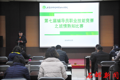 2018年12月17日下午,学院第七届辅导员职业技能竞赛之班情熟知比赛在图书馆报告厅举办,各系共24名辅导员参加了比赛。学院党委副书记、副院长周爱莲,学生处、团委的领导和七个系的主管学生工作的书记、副书记观看了比赛。