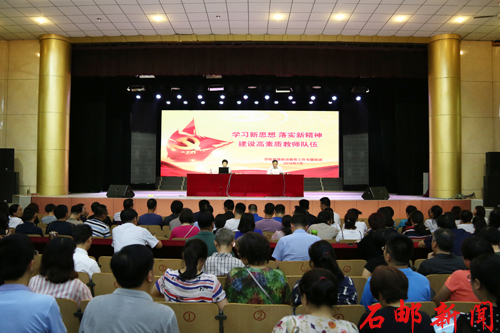 2018年7月4日下午,学院在文化活动中心礼堂举办了以“学习新思想 落实新精神 建设高素质教师队伍”为主题的思想政治教育工作专题培训会,学院党委副书记、副院长周爱莲做了专题讲授。学院副院长赵栓亮主持会议,学院全体中层干部,各党总支、支部书记,全体系部教师,党委各职能部门党员干部,以及教师发展工作办公室、教务处、学生处全体人员共计300余人参加了培训学习。