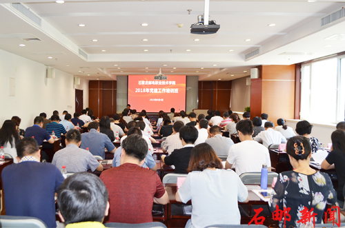 2018年6月4日,学院2018年党建工作培训班开班,党委书记郎秋洪作动员讲话并讲授专题党课。学院领导、全体中层干部、培训班全体学员参加会议。