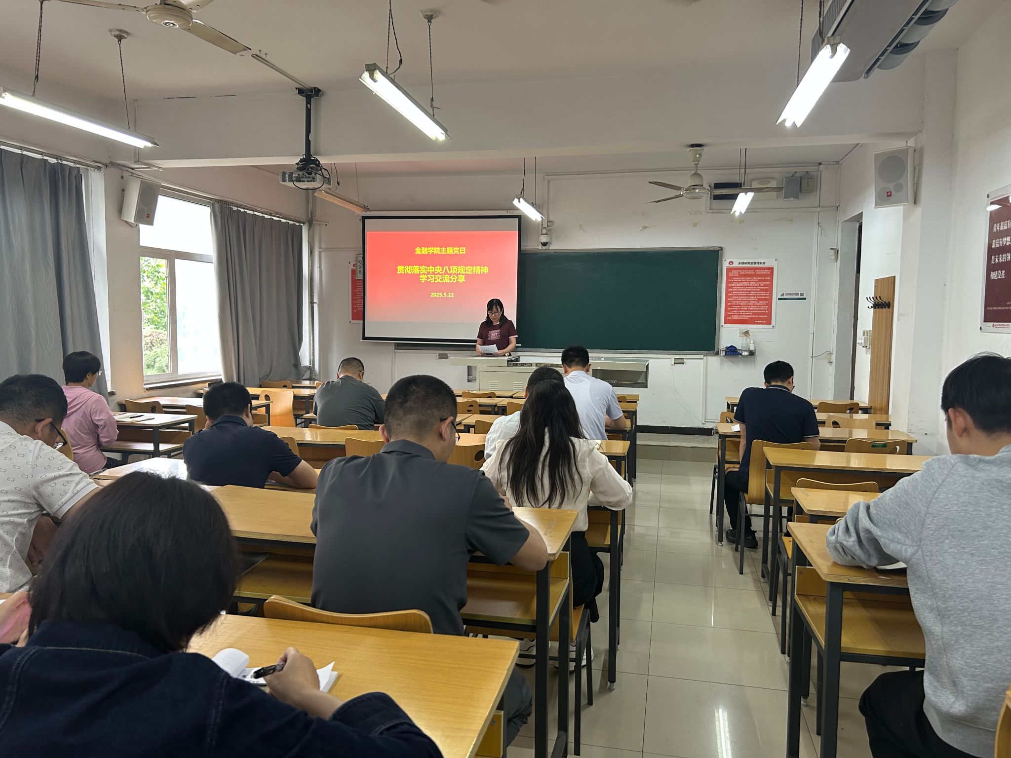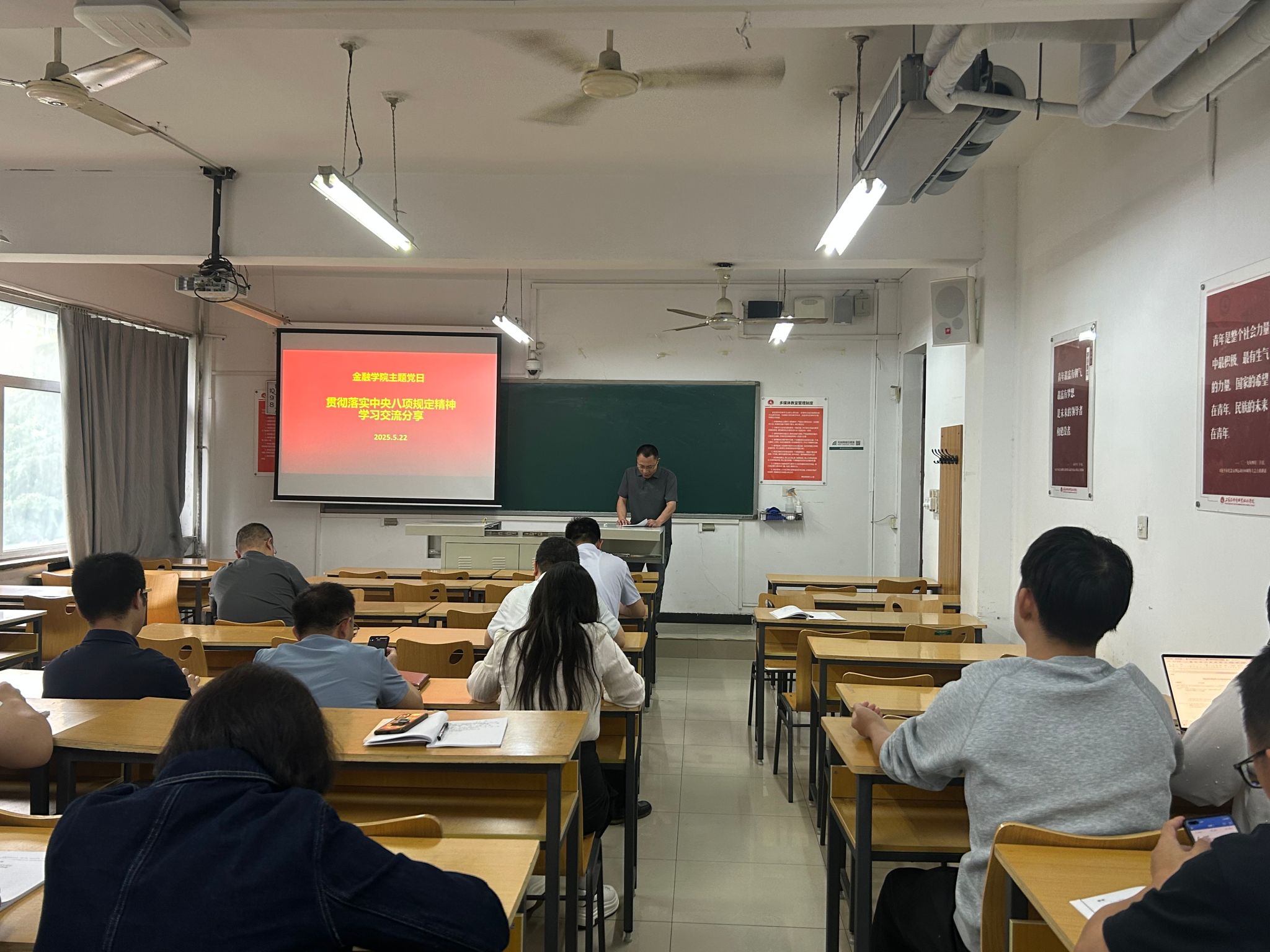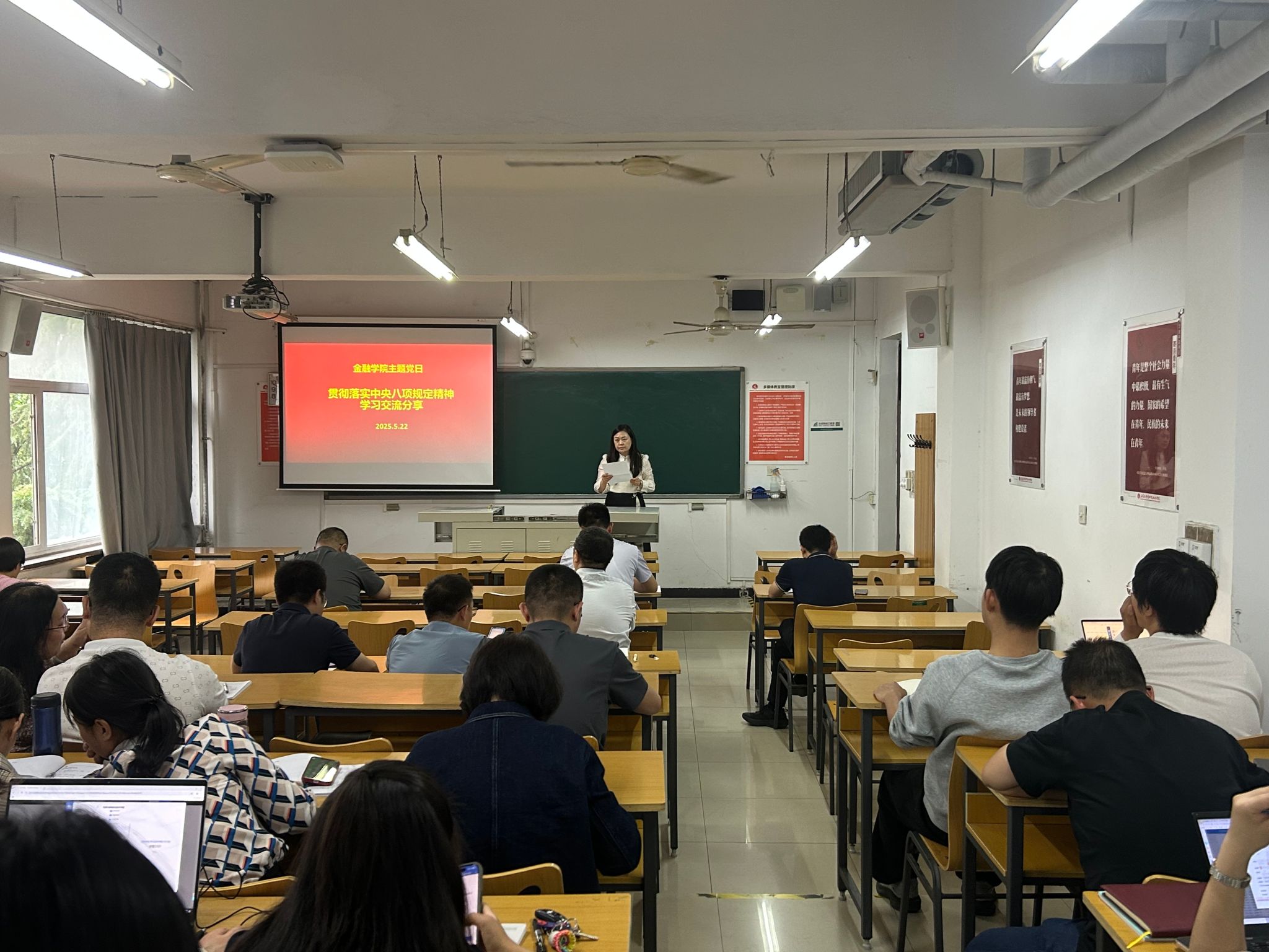 5月22日下午,金融学院党总支组织开展深入贯彻中央八项规定精神学习教育交流分享主题党日活动。本次活动由党总支书记邢鹏主持,多位教师党员代表结合自身工作实际,分享深入贯彻中央八项规定精神学习教育的心得体会。
