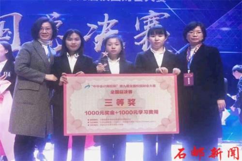 2019年11月17日,第九届“中华会计网校杯”全国校园财会大赛全国总决赛(本专科混合)在北京落幕。由学院会计系马珍珍、武侠、祁科豪三位老师指导,薛菲菲、何雅、潘兴建三名学生组成的参赛队,在本次总决赛中获得团体三等奖,马珍珍、武侠、祁科豪分别获得优秀指导教师奖。