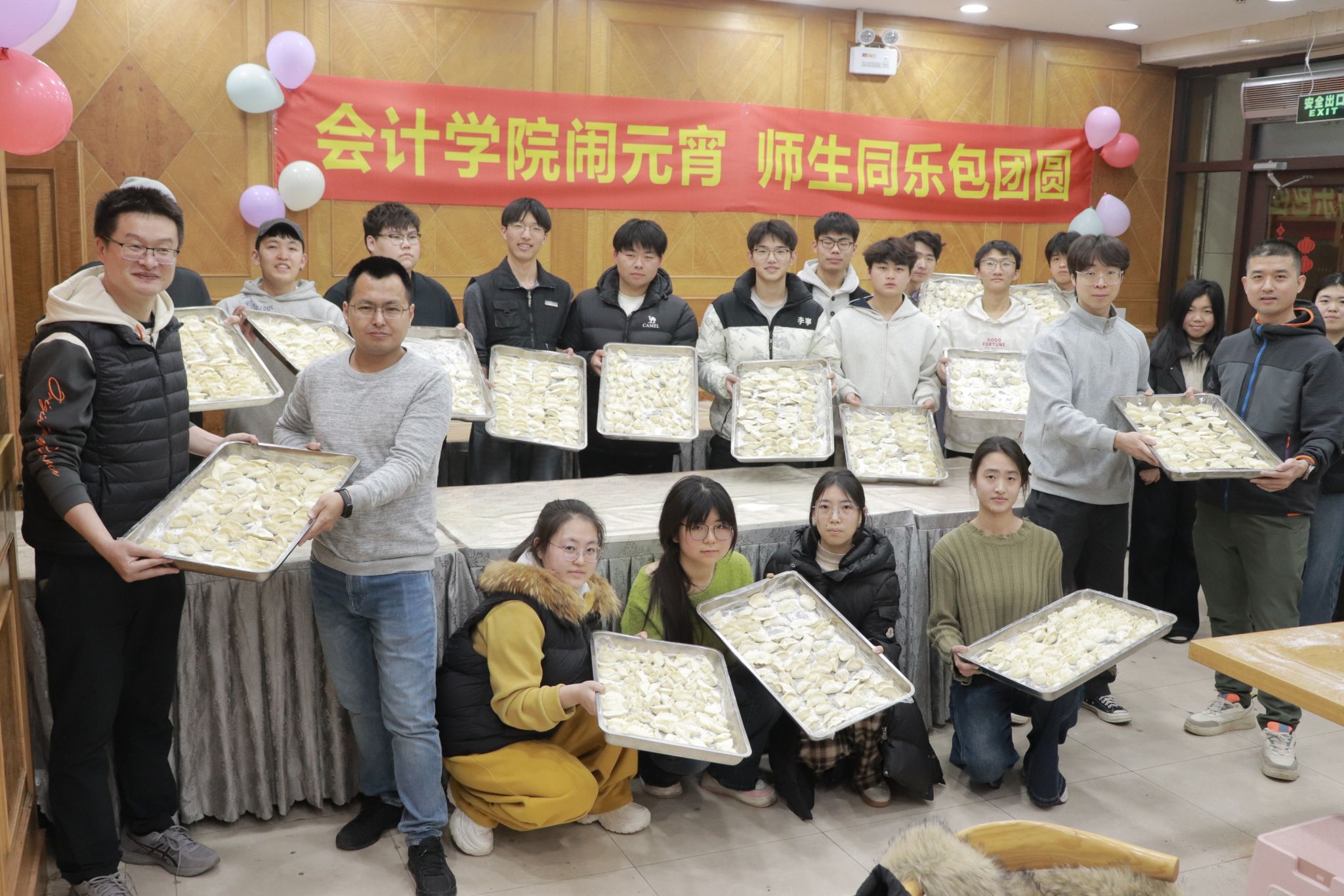 2026年3月3日,正值农历正月十五元宵节。为弥补开学早、未能在家过节的遗憾,让异地求学的学子们感受校园里的团圆温暖,会计学院学生工作办公室组织团委、学生会学生干部,在食堂开展“会计学院闹元宵 师生同乐包团圆”主题活动,全体辅导员老师与学生骨干齐聚一堂,共庆佳节。