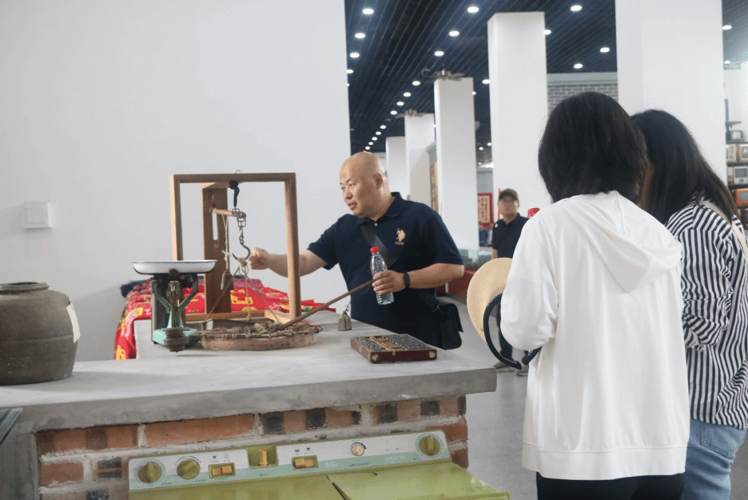 走进公社陈列馆,陈列馆中摆放的泛黄的工业簿、老式农具、历史照片生动还原了当年群众“战天斗地、热火朝天”的劳动场景。讲解员讲述着公社成立初期,社员们克服物资匮乏、技术落后等困难,通过集体协作兴修水利、发展生产的故事,让在场党员深刻体会到老一辈自力更生、艰苦奋斗的精神。