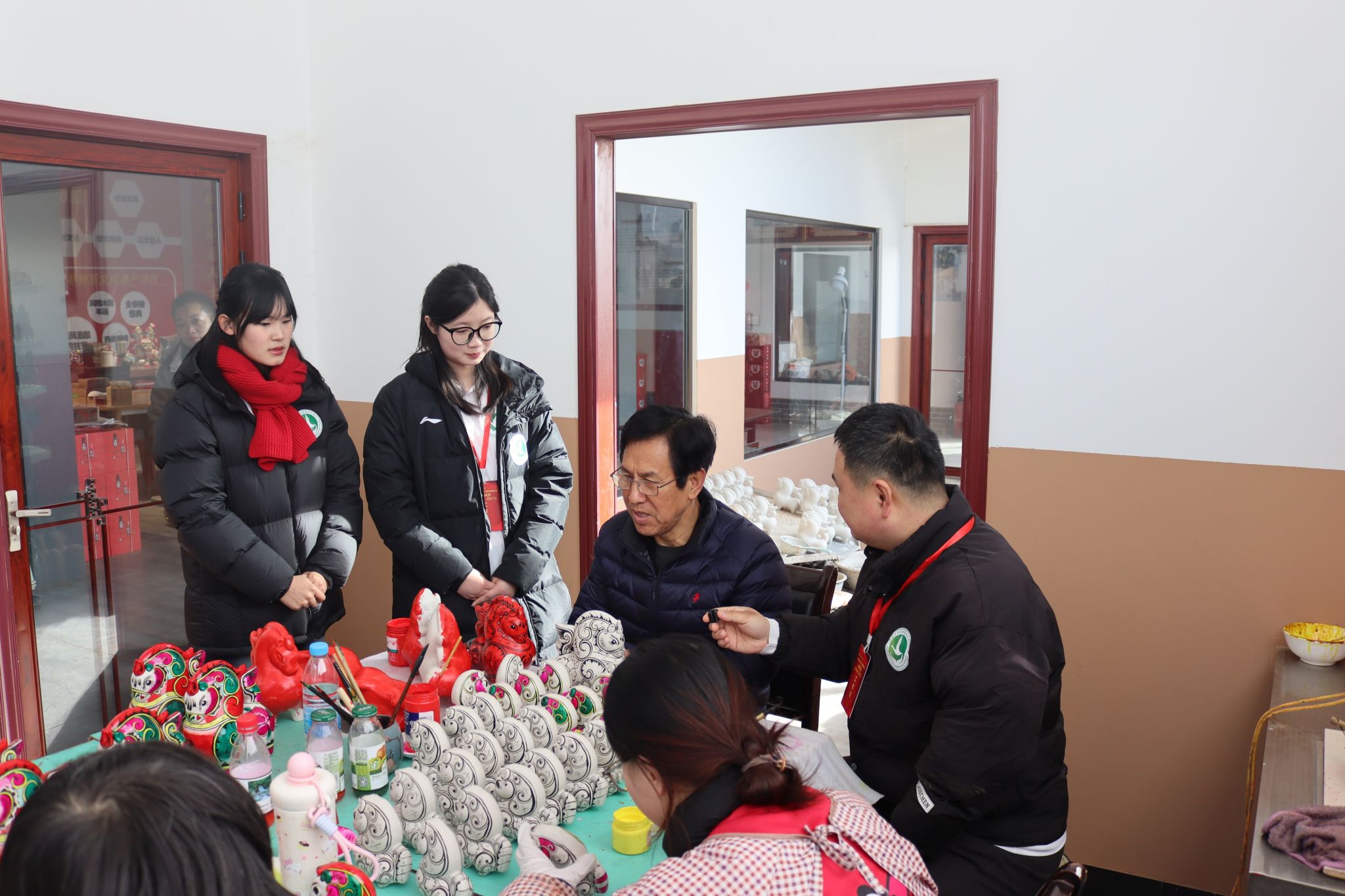 在凤翔泥塑非遗传承人黄婷的悉心指导下,团队成员全程沉浸式参与凤翔泥塑的制作——从当地特有的“板板土”挖取、晒土、和泥,到塑形、晾干、打磨,再到绘彩、上光等。