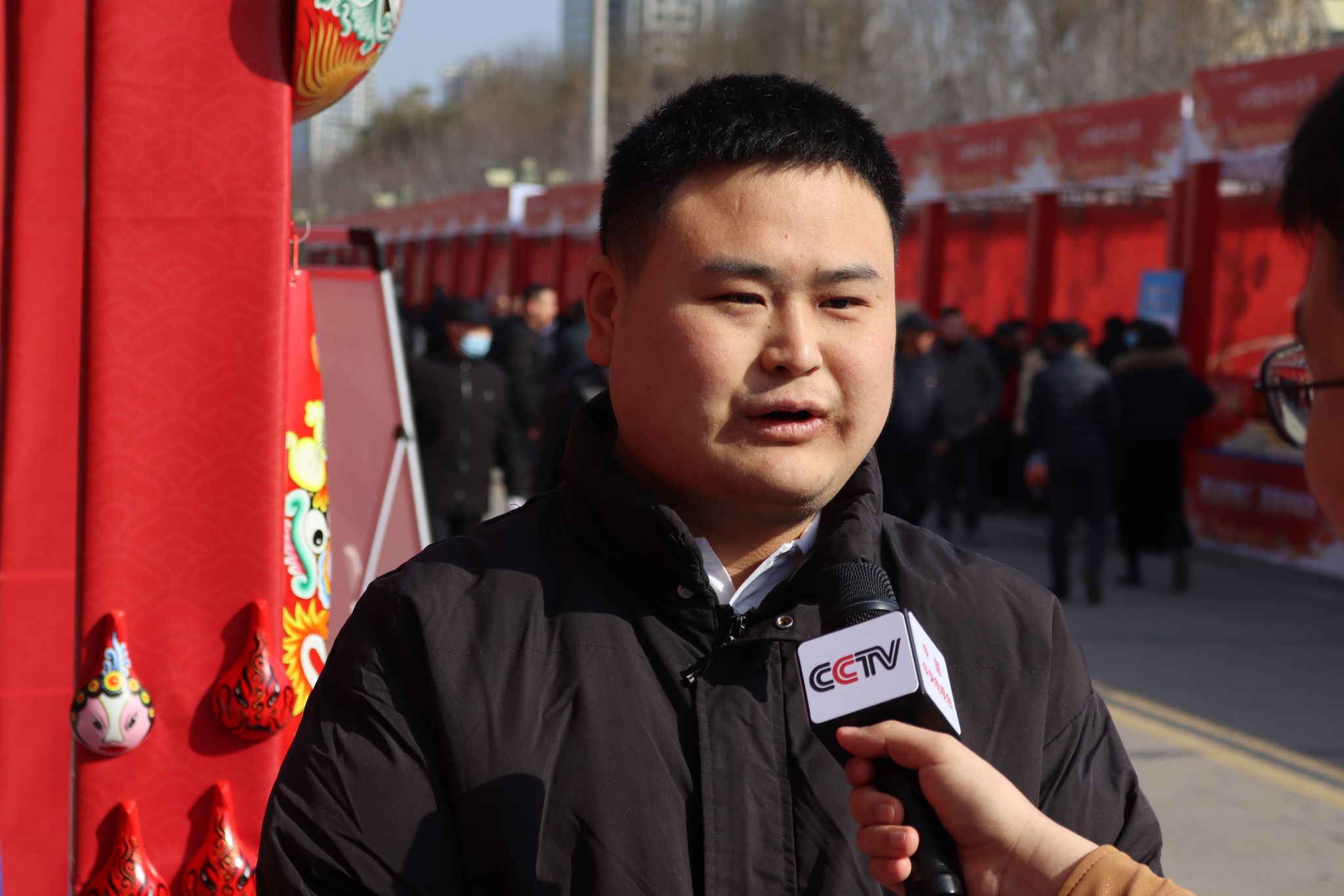 结合专业特色,实践团在当地年货节现场搭建直播间,推广凤翔泥塑、马勺脸谱等非遗产品。团队通过现场讲解、工艺展示与文化解读,吸引了大量线上线下观众关注与互动,传播效果良好。活动期间,团队成员吴同学还接受了中央电视台采访,面向全国观众介绍凤翔非遗的文化内涵与当代发展。