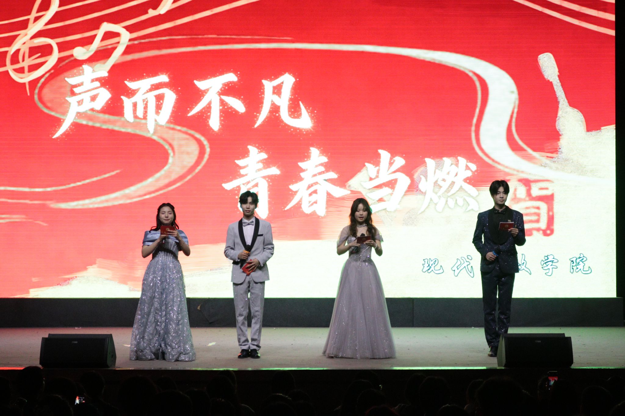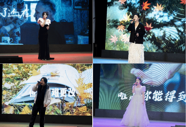 舞台的精彩从未停歇,多元的表演让现场氛围持续升温。现代邮政学院礼仪队带来串场走秀《读韵》,步履款款间尽显邮院学子的优雅风采,为歌声注入别样韵味。随后,营销2502班苟誉潇的《像风一样》、管销2501班高展歌的《若梦》、营销2502班刘亚菲的《冲动》、直播2502班张琳佳的《燕归巢》,各有风格,各具精彩——或轻快灵动,或婉转悠扬,或热烈奔放,每一首歌都唱尽了少年意气,每一个舞台都绽放出青春光彩。