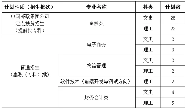 3. 未参加面试或面试未合格考生不得填报“邮政扶贫招生计划”专业志愿,但可填报我院的普通招生专业志愿。