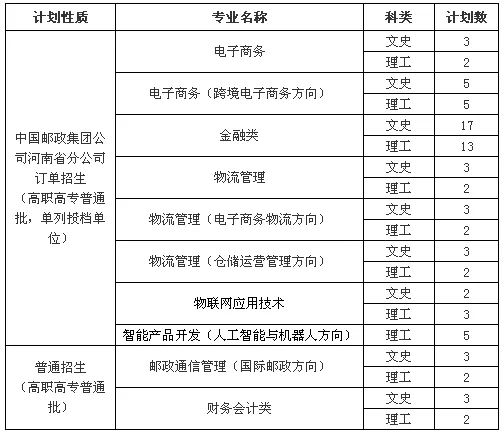 表1 石家庄邮电职业技术学院2019年河南招生计划一览表