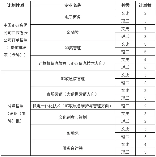 表1 石家庄邮电职业技术学院2019年江西招生计划一览表
