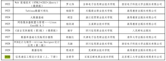 2025年11月3日,教育部公示第二批“十四五”职业教育国家规划教材遴选结果,我院孙青华教授主编的《信息通信工程设计实务(上、下册)》入选。在学院教材建设管理工作指导下,在学院教材建设激励机制的支撑下,在学院活页式、工作手册式、数字教材等新形态教材建设支持下,我院信息通信工程设计类教材建设的取得的一项新成果。孙青华教授引领下,集智能工程学院的曲文敬、顾长青、刘保庆三位教师以及中国移动、河北电信等多位企业资深专家,校企合作共著而成。