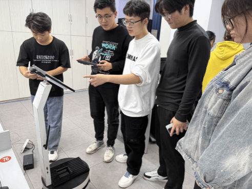 课程初期,学院教师系统传授服务机器人的基础理论,涵盖机器人感知、决策与控制等核心领域,为学生筑牢了坚实的理论根基。此后,企业工程师凭借其丰富的行业经验和前沿技术视野,无缝衔接实践教学环节,聚焦于“语音控制机器人”这一源自真实企业场景的项目,详细解析从语音指令识别、语义理解到机器人动作执行的完整技术链路。学生们在教师和工程师的共同指导下,分组进行地图构建、自主导航、语义理解、语音控制等模块的实战开发与调试,确保了学生能够在实践中掌握关键技术,实现理论与实践的深度融合。